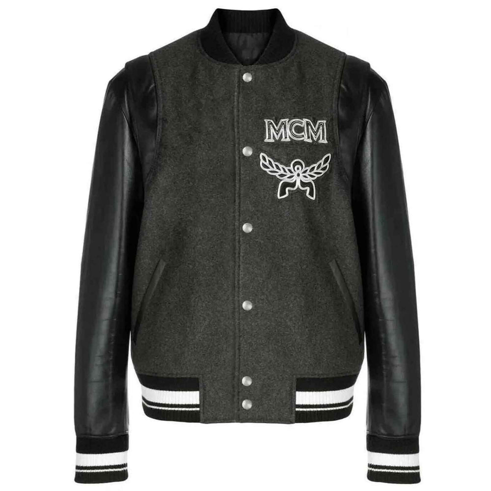 Step into retro luxury with this MCM vintage-inspired varsity stadium jacket, featuring a bold logo patch design that adds instant streetwear appeal. Crafted with a black wool body and genuine leather sleeves, this bomber coat blends classic varsity style with modern designer fashion. Whether you're layering for cooler days or making a bold statement on the streets, this jacket delivers premium style and timeless versatility.
