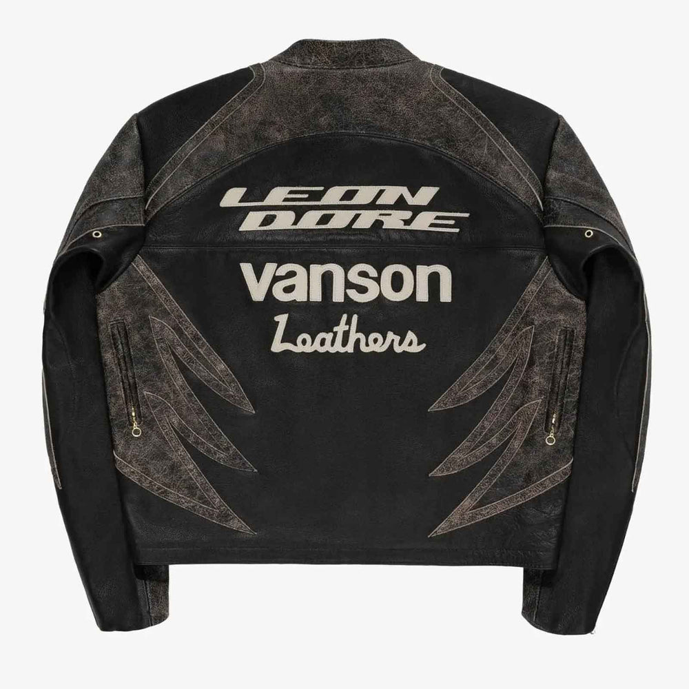 Experience luxury craftsmanship and racing heritage with the Aime Leon Dore x Vanson Leather Motorcycle Jacket. Handmade from premium genuine cowhide leather, this jacket combines classic biker toughness with vintage racing style. The iconic embroidered detailing and bold silhouette make it a standout piece for riders, collectors, and streetwear enthusiasts.